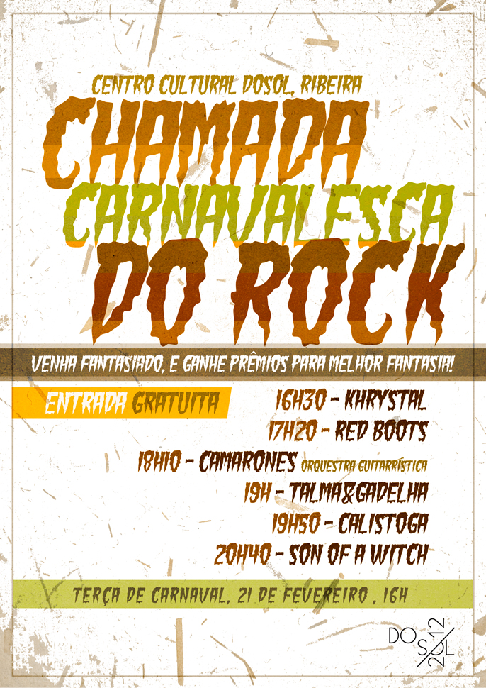 A Chamada Carnavalesca do Rock 2012 tem o apoio do Governo do RN através do Edital de carnaval e da Preitura do Natal também através do edital do carnaval. A realização é da Associação Cultural Dosol. A entrada é gratuita!